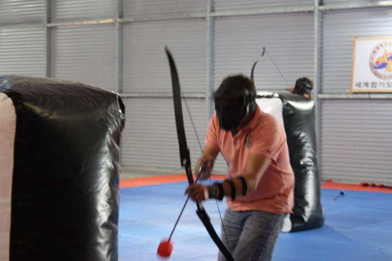 Chaque joueur porte un masque protégeant son visage. Des arcs et des flèches avec des embouts en mousse spécialement conçus pour le sport de combat d'arc sont utilisés.