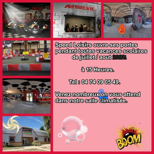 Pendant toutes les vacances scolaires de juillet et aout 2023, Speed Loisirs ouvre ses portes tous les jours à partir de 15 Heures.
